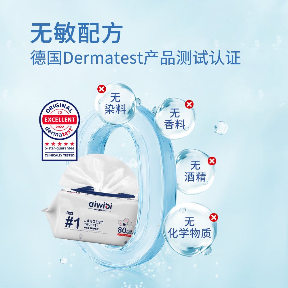 Aiwibi湿巾采用优质降解纤维制成,全程无添加荧光剂、酒精、刺激性化学物质,从材质到配方都温和安全。