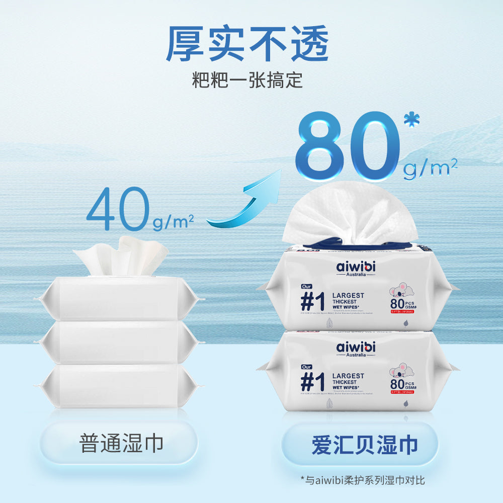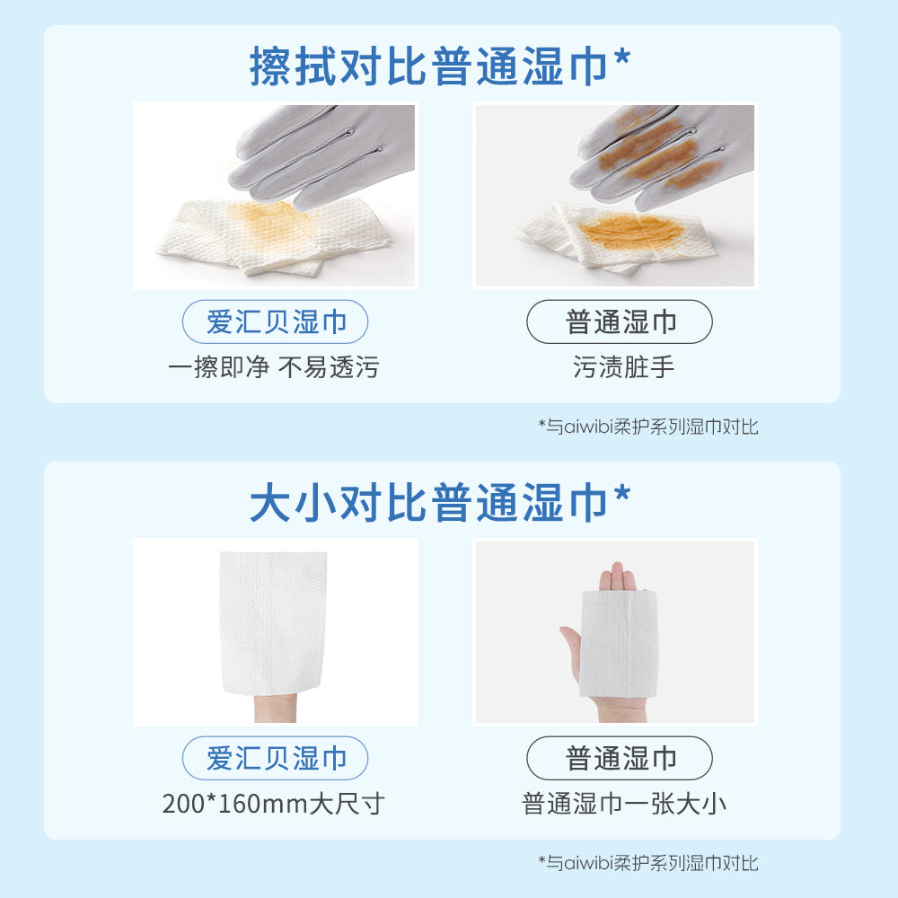 Aiwibi湿巾更加厚实柔软,清洁体验更舒适,同时低敏温和,且无刺激性成分,宝宝用着更安心。