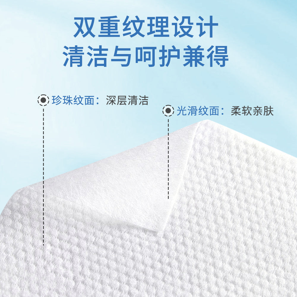 一面珍珠纹强效清洁,一面光滑纹柔软亲肤,一巾双用更贴心。
