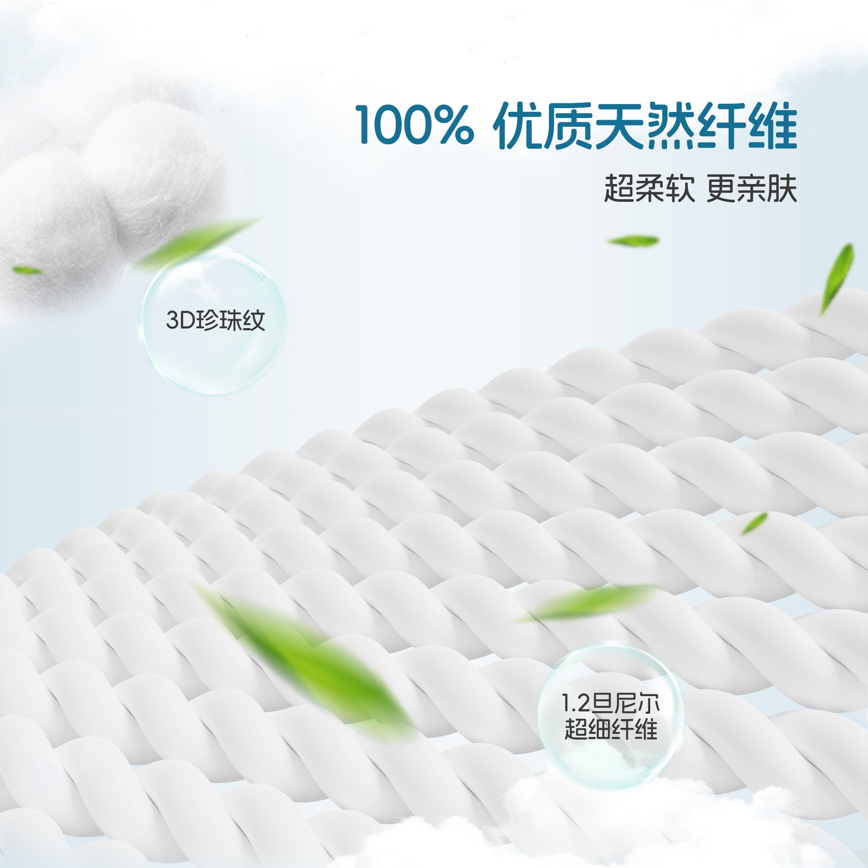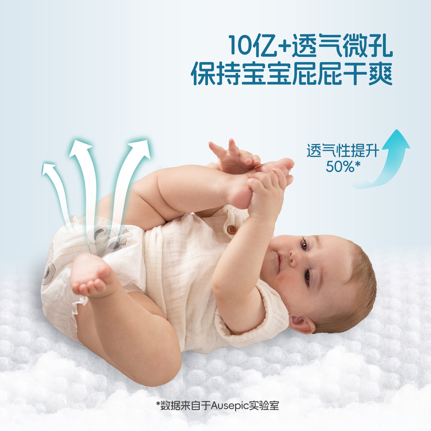 3D 珍珠纹路设计,减少与肌肤接触的面积与摩擦,同时提升30%的透气性,温柔呵护宝宝娇嫩肌肤。