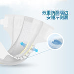 同时,每次穿纸尿裤时都要确认纸尿裤的防漏腿围是位置正确,没有向内翻折的。如果您正在使用的是粘贴式纸尿裤,需要将腰贴粘贴到位,松紧度以可轻松塞入一根手指为宜,过松或过紧都可能影响防漏效果。