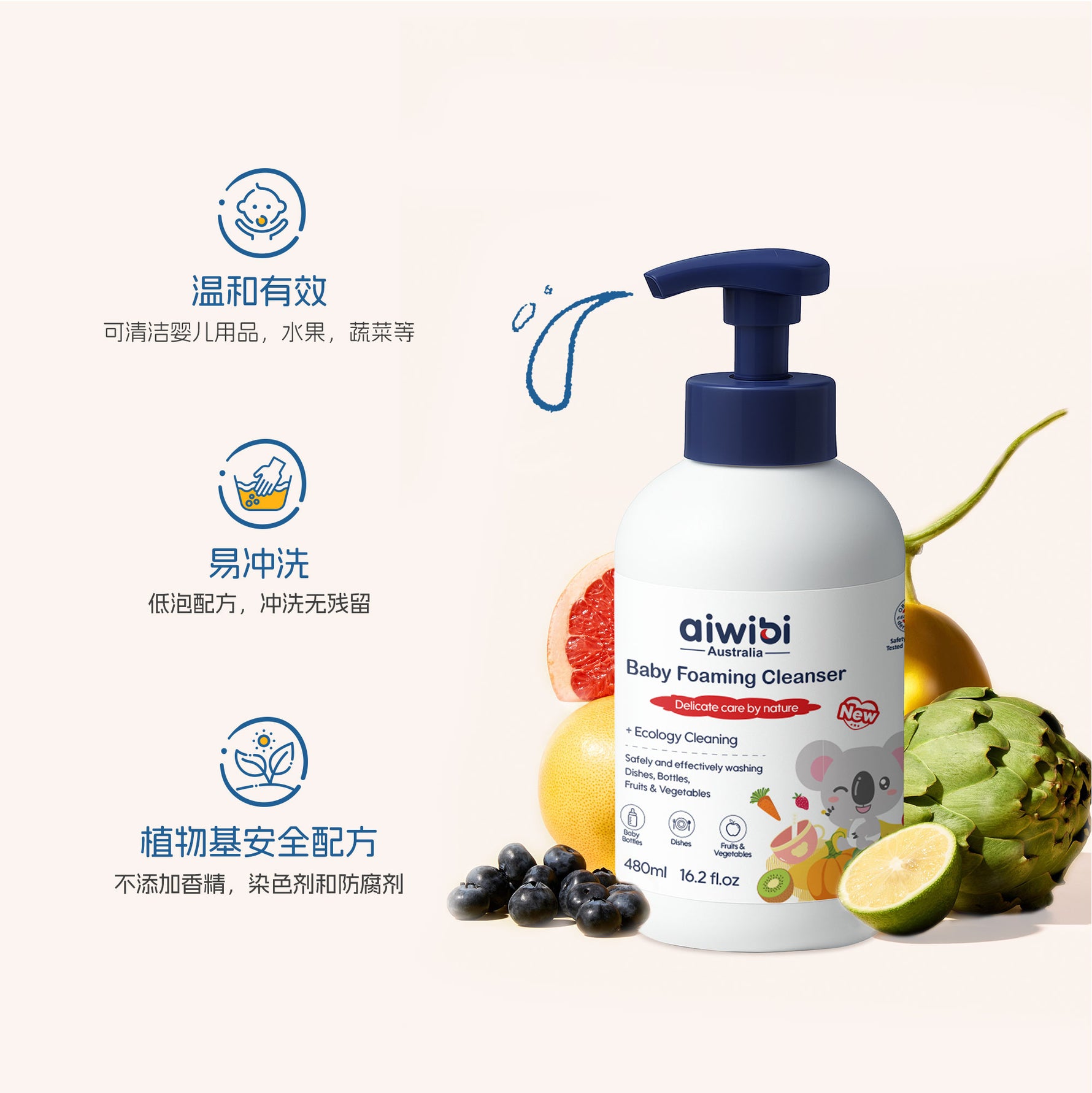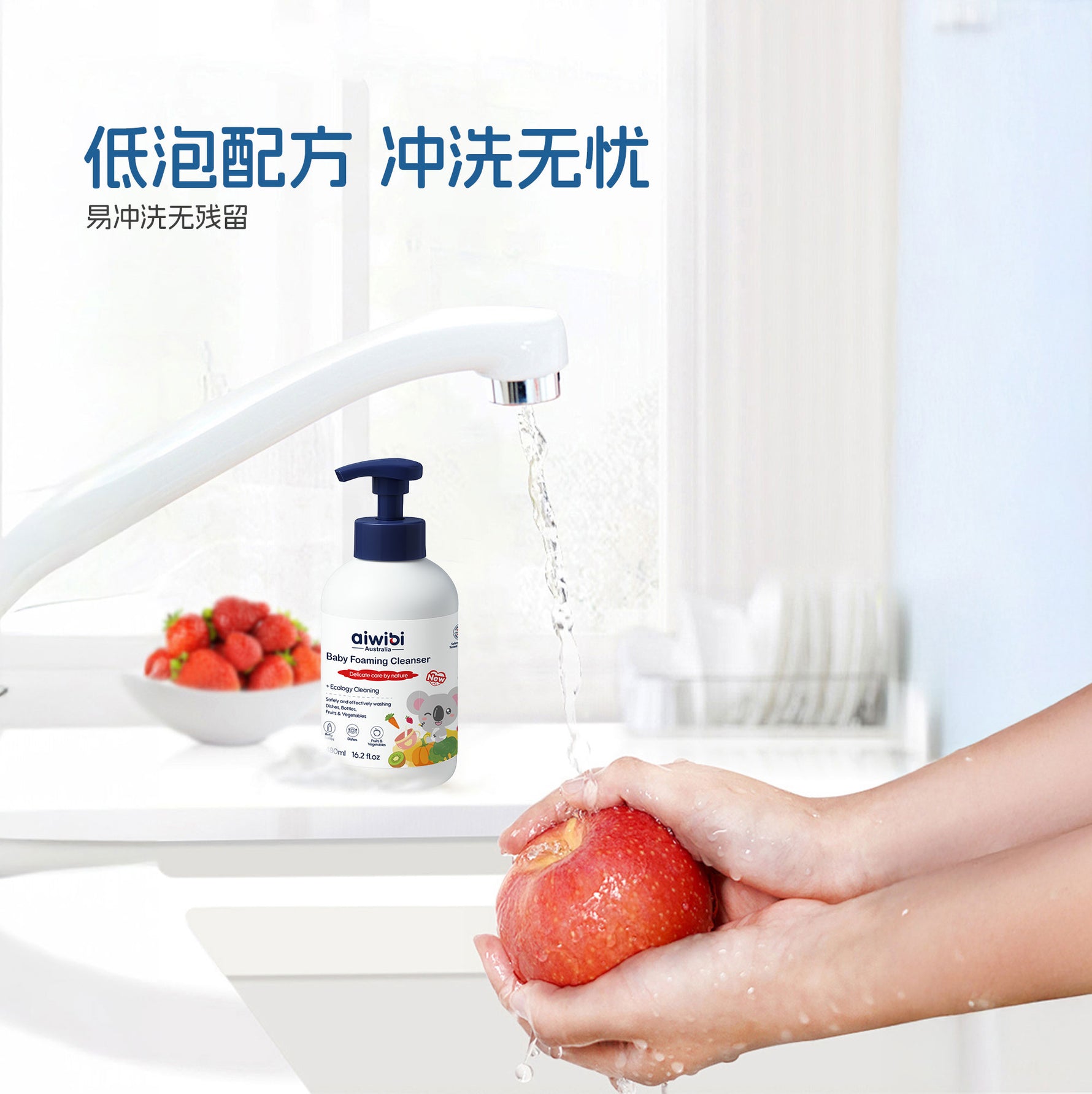 单价 / 每Aiwibi果蔬清洗剂,温和有效,可清洁宝宝用品、水果、蔬菜等。采用无患子果提取物植萃配方,不含磷酸盐、酒精及荧光剂,含天然温和香精,安全无残留。低泡设计易漂洗,可去除奶渍、农残等常见污渍,符合食品级安全标准,适配餐具、奶瓶、果蔬、玩具等多种用途,给予宝宝安心呵护。