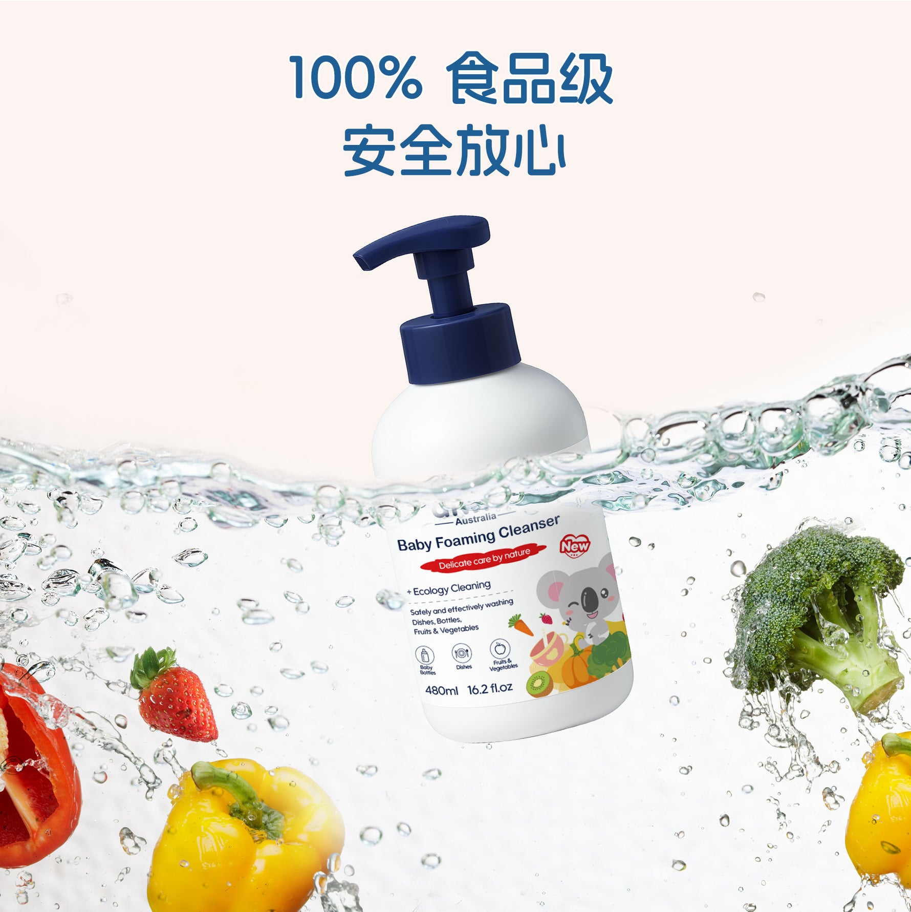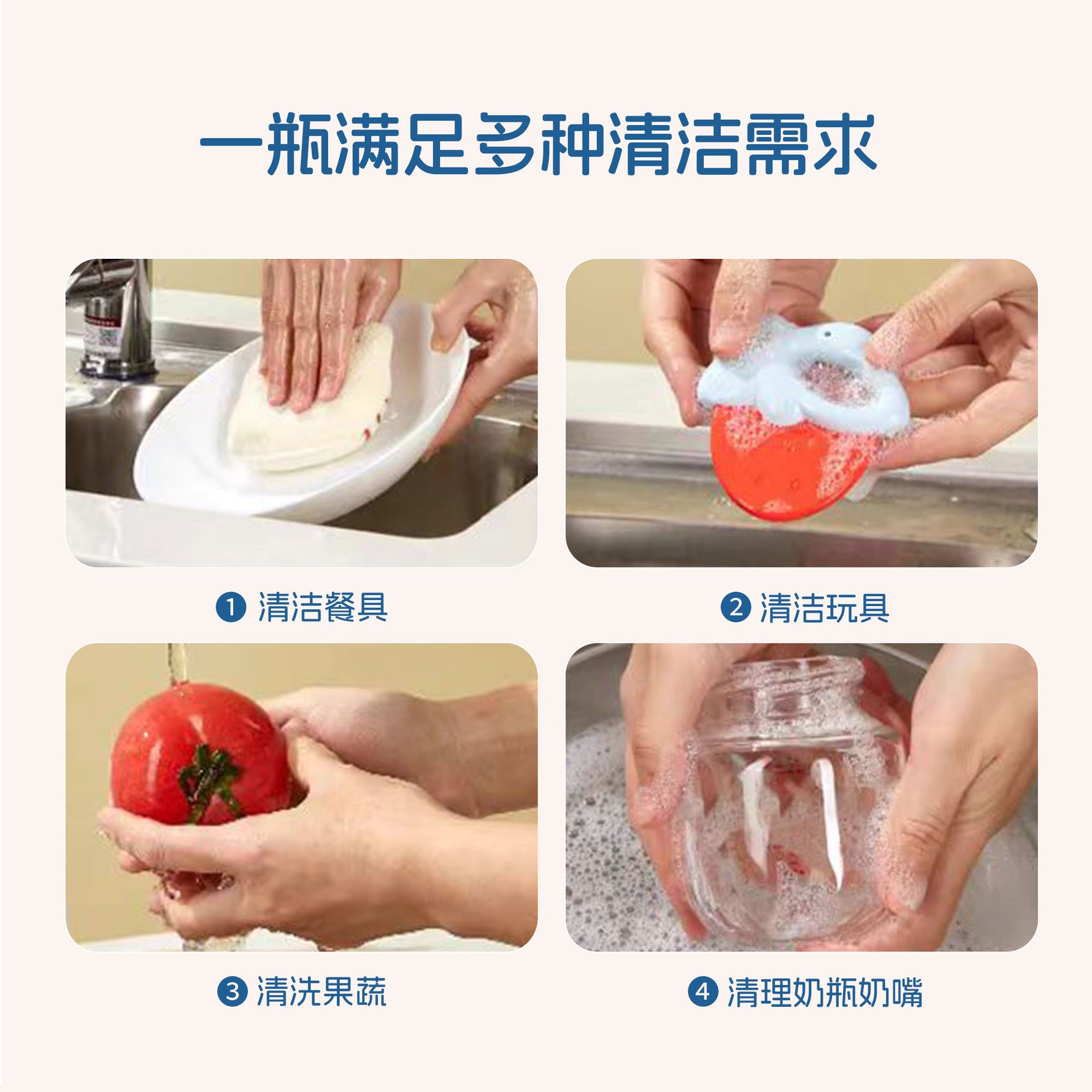 本产品符合食品级安全标准,可安心用于清洗宝宝奶瓶、餐具、水果及蔬菜。