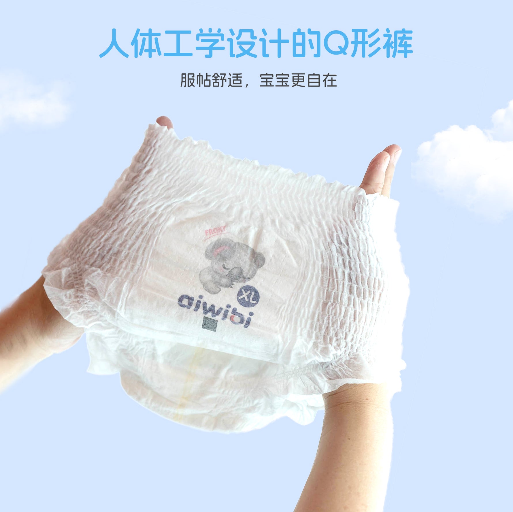 传统纸尿裤多针对男宝/女宝排尿位置差异,将吸收芯体分别设计为靠前/靠后。Aiwibi 纸尿裤经研发优化,采用全方位均衡吸收的芯体设计,男女宝均可安心使用,无需区分。