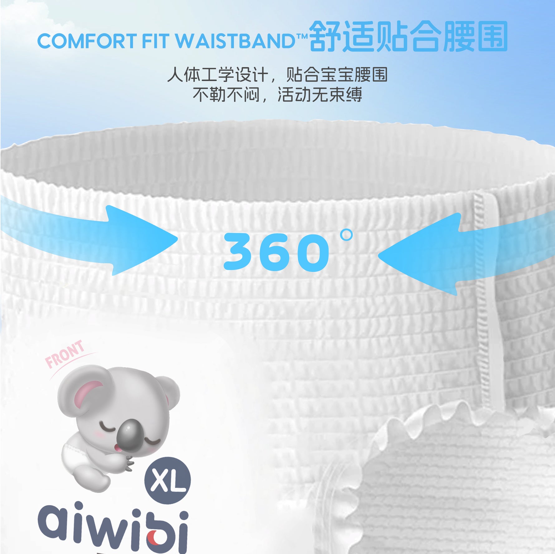 采用人体工学剪裁设计,360°全方位舒适贴合,有效防漏。高弹性材质可适配宝宝活动幅度,贴合稳固不紧绷,宝宝穿着更舒服。
