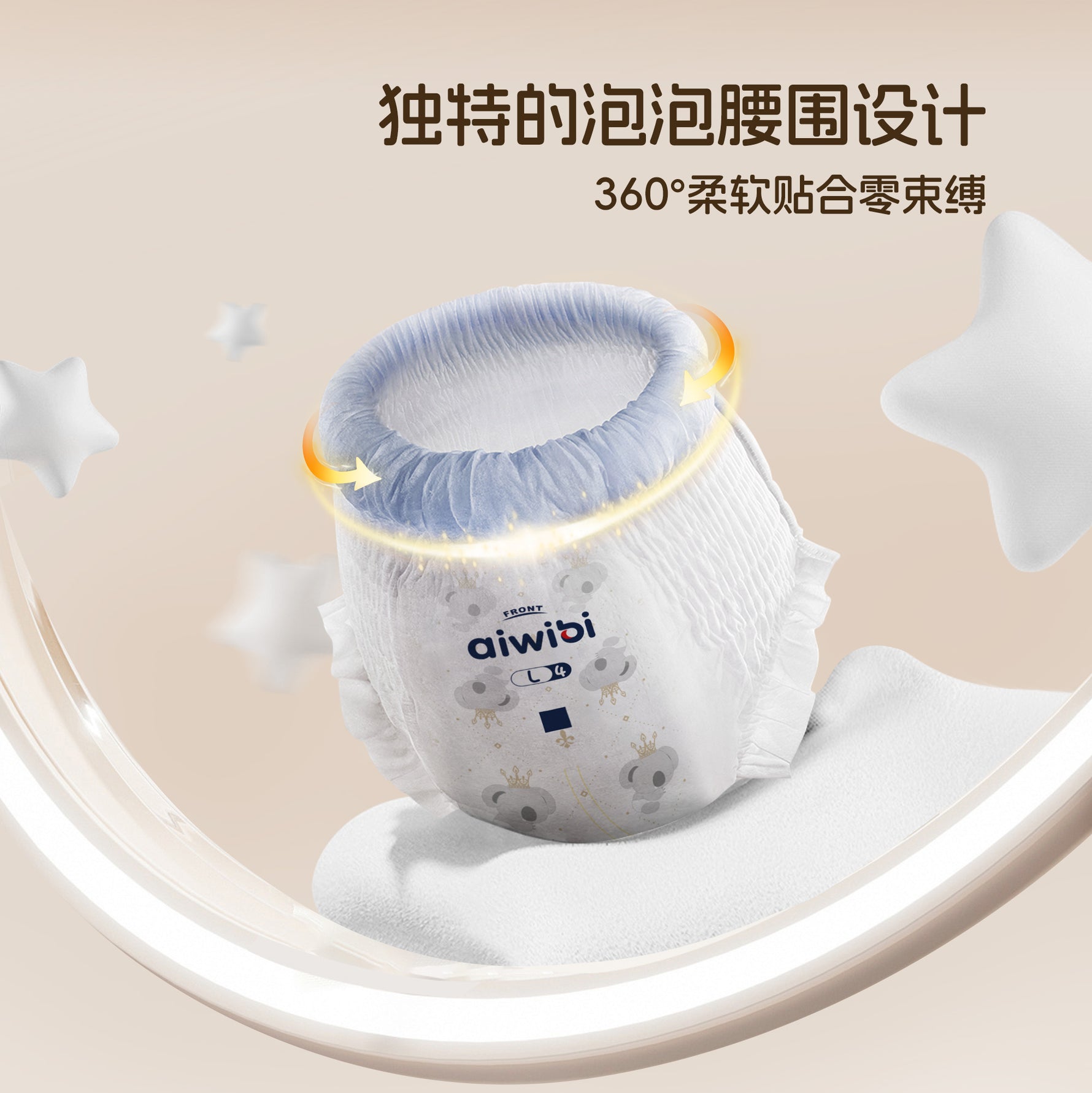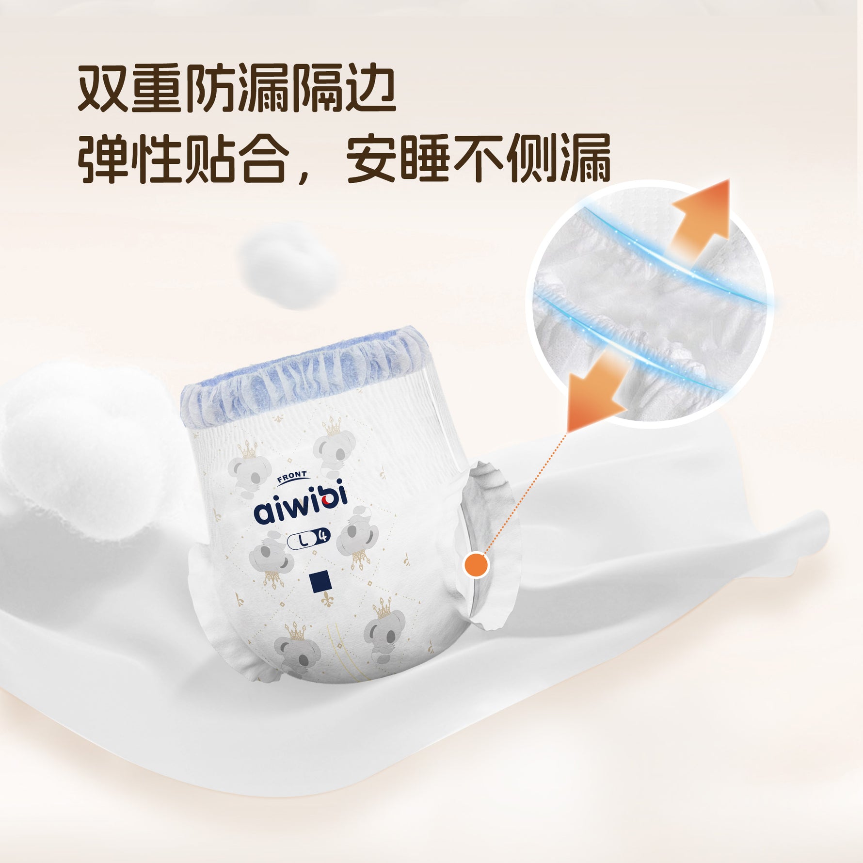 传统纸尿裤多针对男宝/女宝排尿位置差异,将吸收芯体分别设计为靠前/靠后。Aiwibi 纸尿裤经研发优化,采用全方位均衡吸收的芯体设计,男女宝均可安心使用,无需区分。