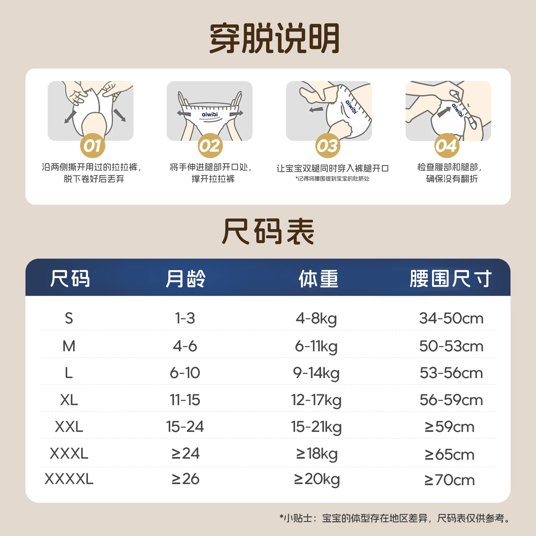 ③ 开封后请尽快使用,以保持纸尿裤的最佳使用状态。由于Aiwibi纸尿裤的超强吸收芯可能会吸收空气中的湿气,长期暴露于潮湿环境中可能会影响纸尿裤的吸收性能。